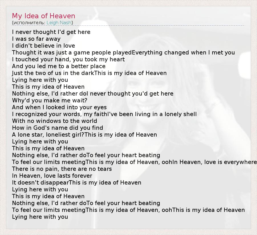 А как ты думаешь, о чем песня "My Idea of Heaven" ?