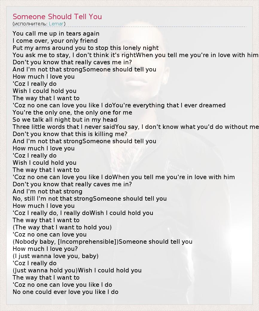 ГлавнаяИсполнителиLemarSomeone Should Tell You