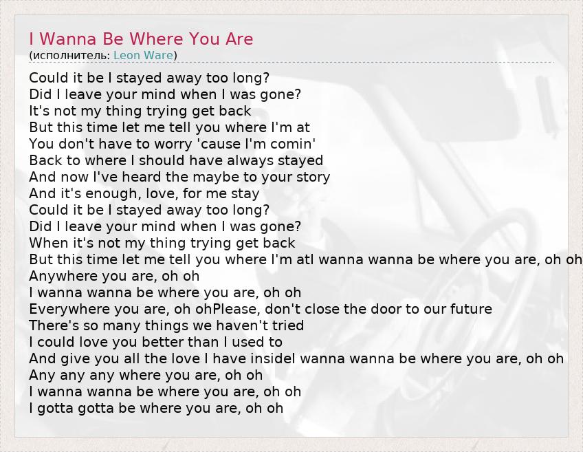 ГлавнаяИсполнителиLeon WareI Wanna Be Where You Are