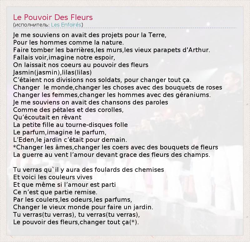 А как ты думаешь, о чем песня "Le Pouvoir Des Fleurs" ?