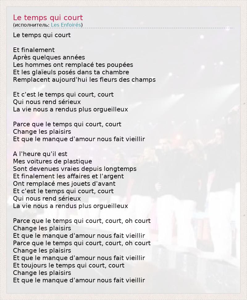 А как ты думаешь, о чем песня "Le temps qui court" ?