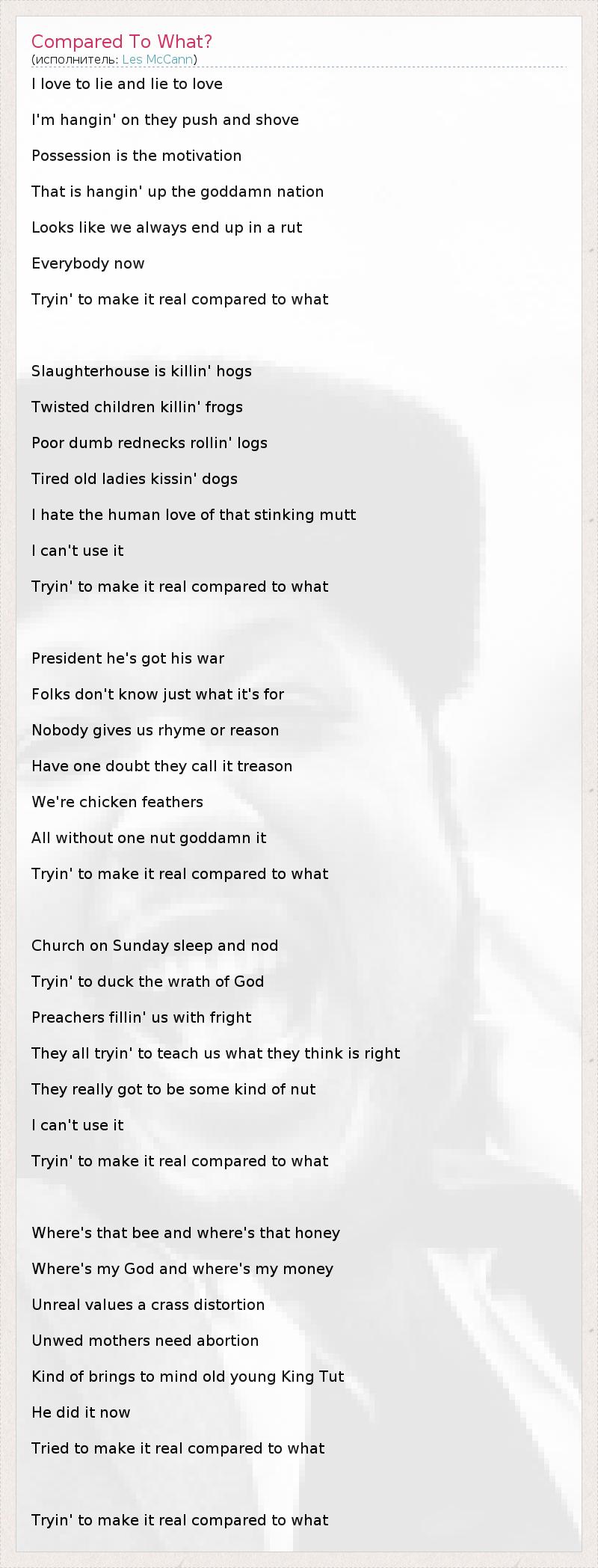А как ты думаешь, о чем песня "Compared To What?" ?