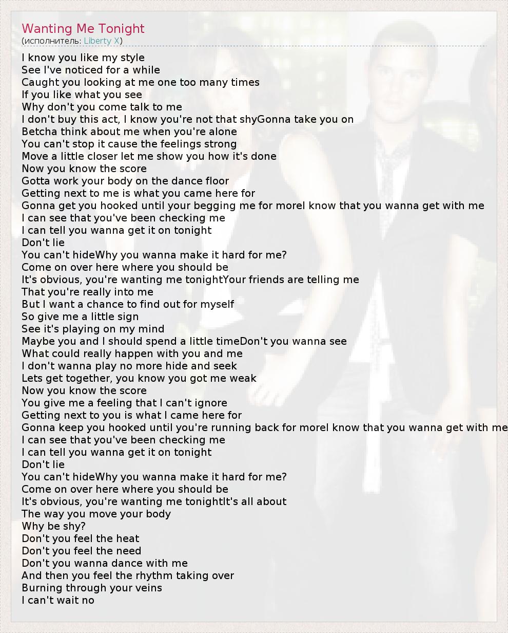 А как ты думаешь, о чем песня "Wanting Me Tonight" ?