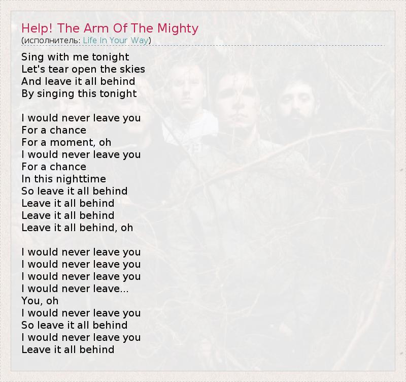 ГлавнаяИсполнителиLife In Your WayHelp! The Arm Of The Mighty