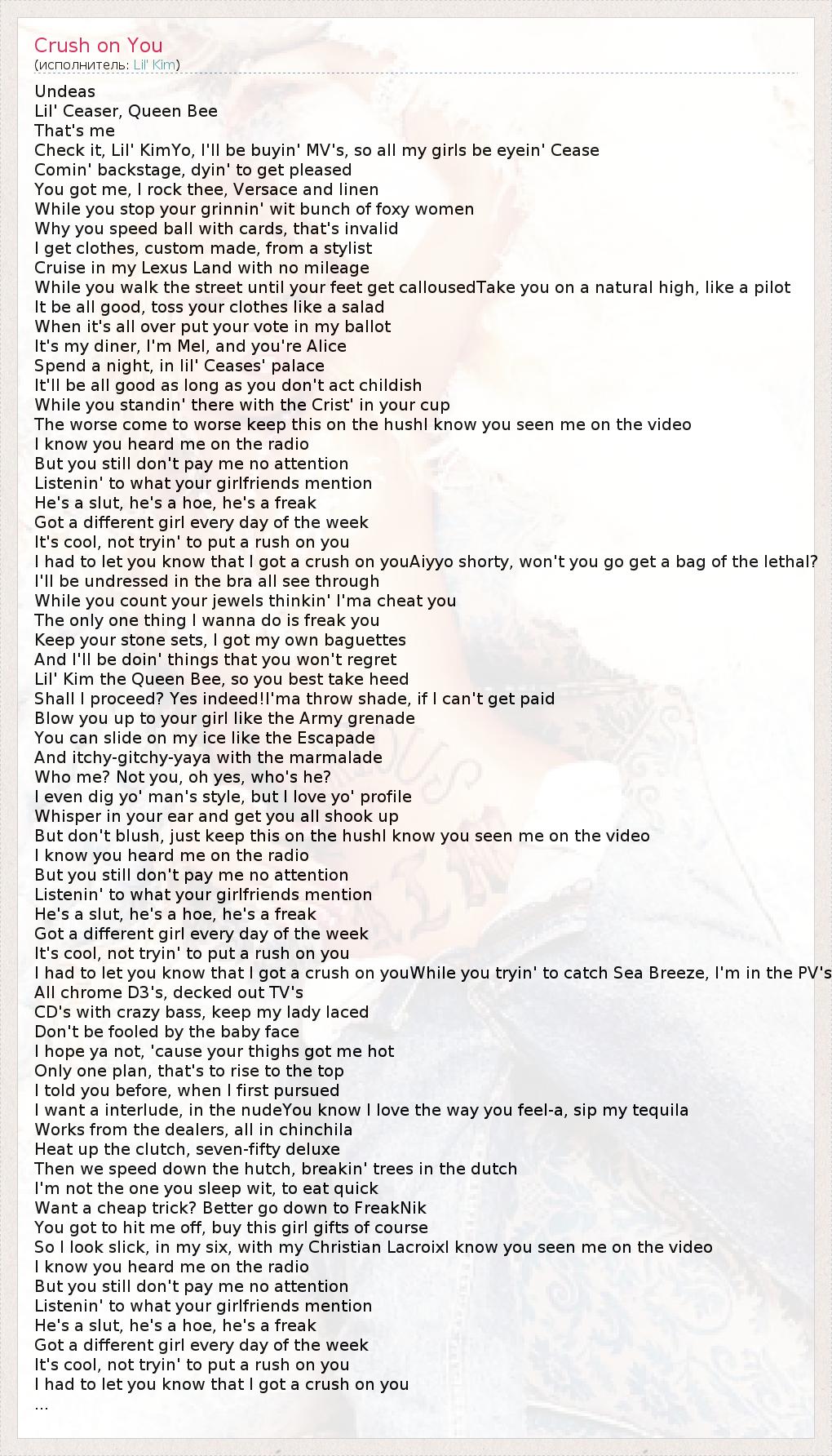 А как ты думаешь, о чем песня "Crush on You" ?
