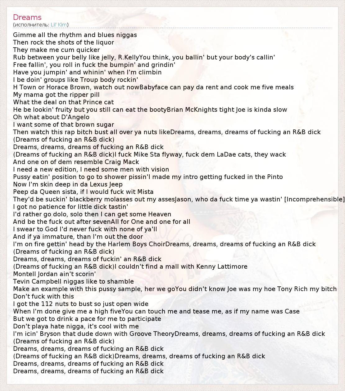 Then watch this rap bitch bust all over ya nuts likeDreams, dreams, dreams of fucking an R&B dick