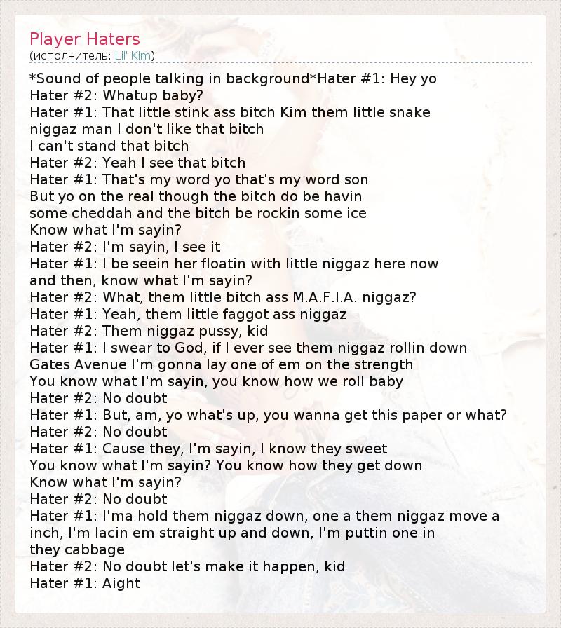 Hater #1: I swear to God, if I ever see them niggaz rollin down