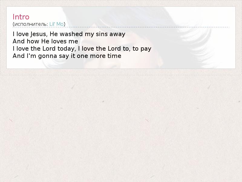 I love Jesus, He washed my sins away And how He loves me I love the Lord today, I love the Lord to, to pay And I'm gonna say it one more time