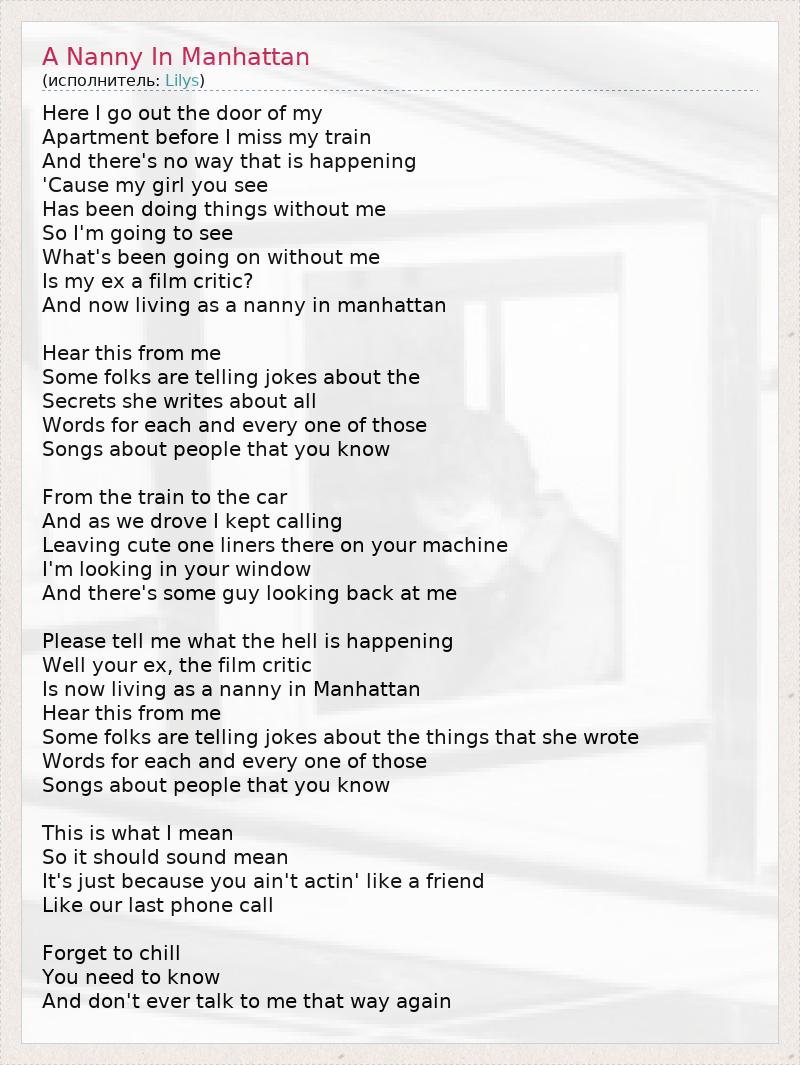 А как ты думаешь, о чем песня "A Nanny In Manhattan" ?