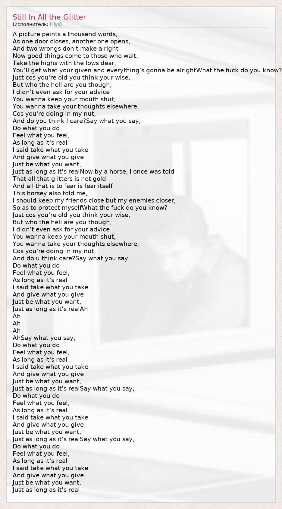ГлавнаяИсполнителиLilysStill In All the Glitter