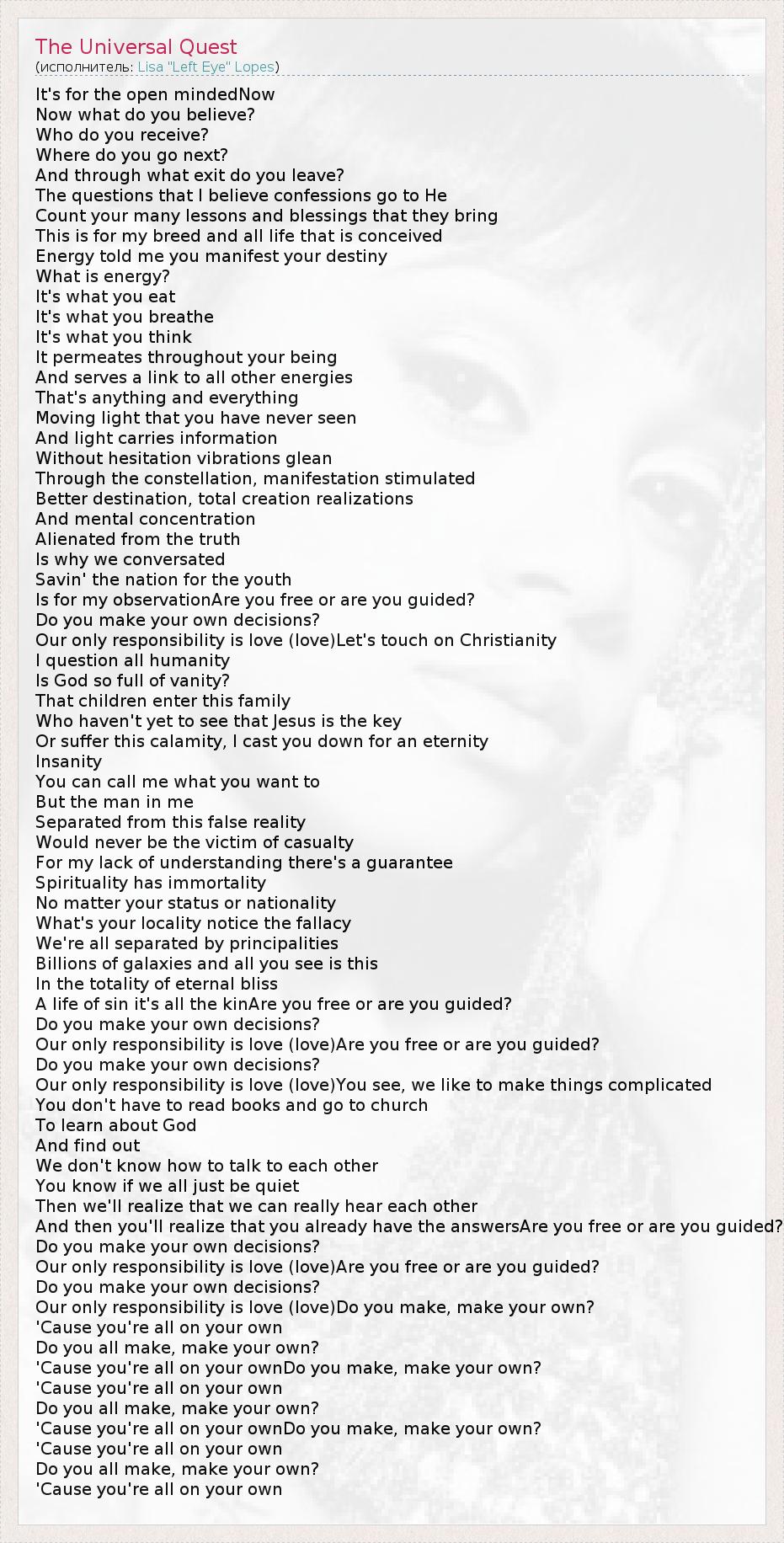 А как ты думаешь, о чем песня "The Universal Quest" ?