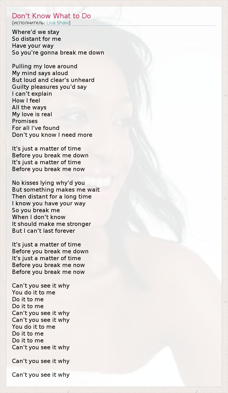 ГлавнаяИсполнителиLisa ShawDon't Know What to Do