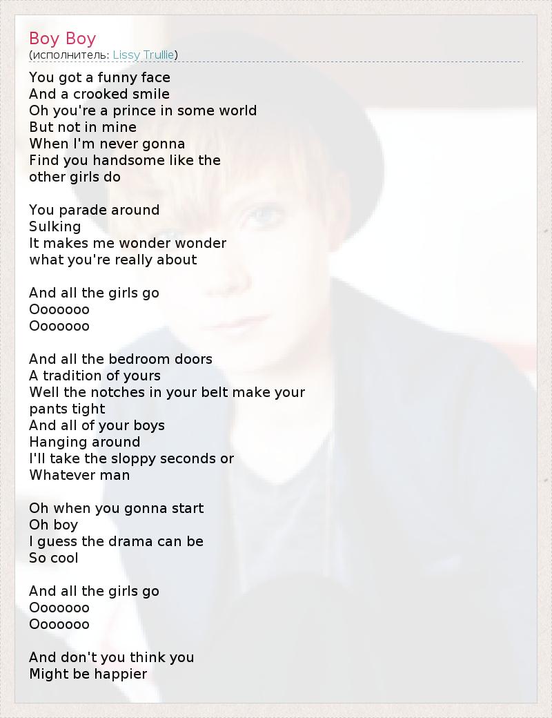 А как ты думаешь, о чем песня "Boy Boy" ?