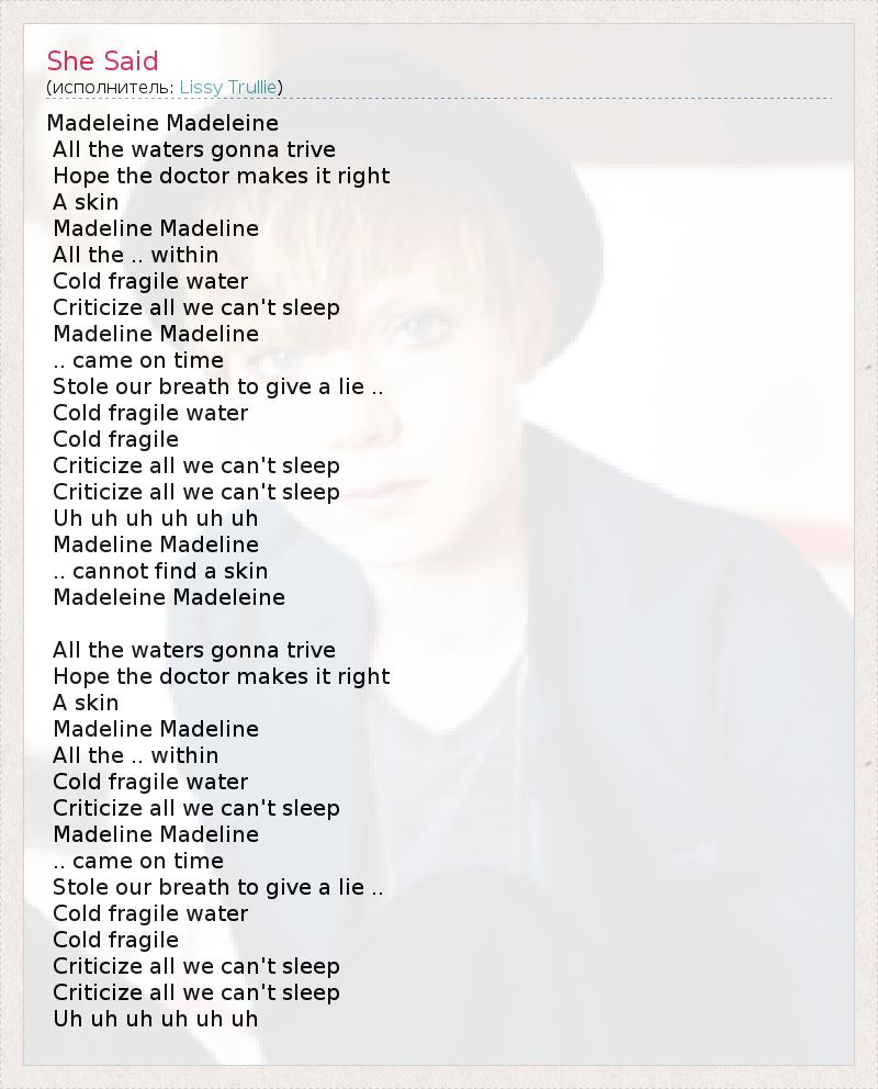А как ты думаешь, о чем песня "She Said" ?