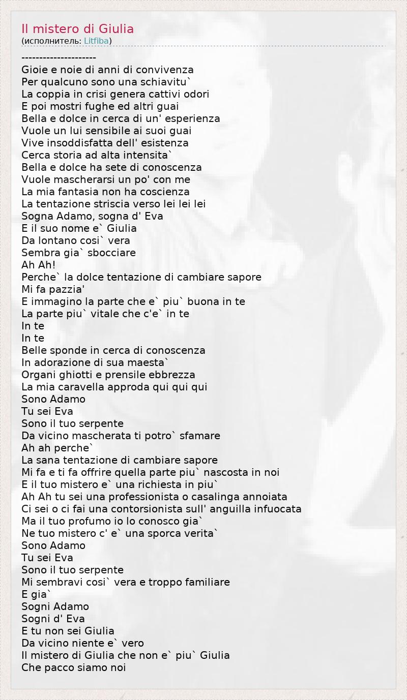 А как ты думаешь, о чем песня "Il mistero di Giulia" ?