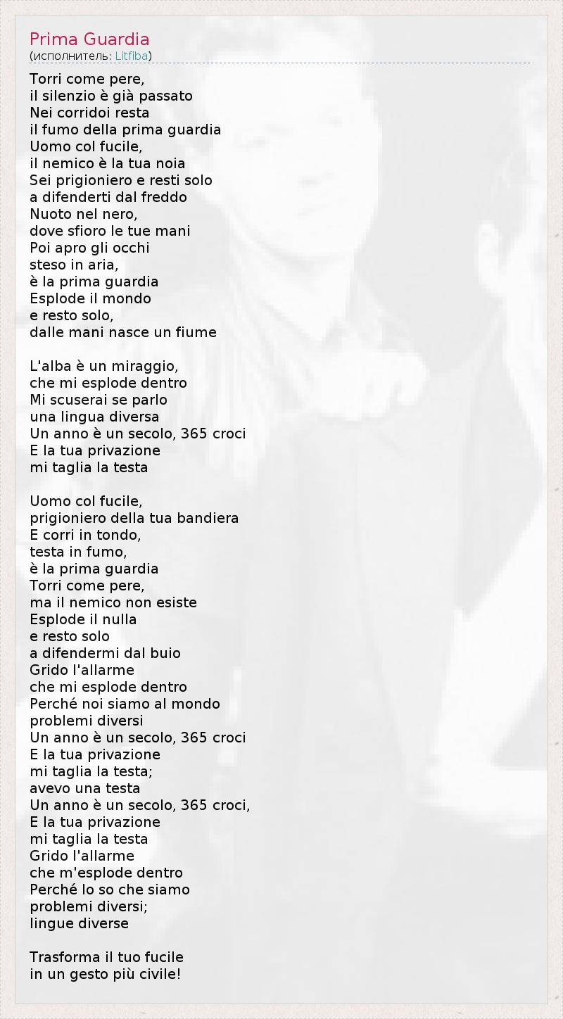 А как ты думаешь, о чем песня "Prima Guardia" ?