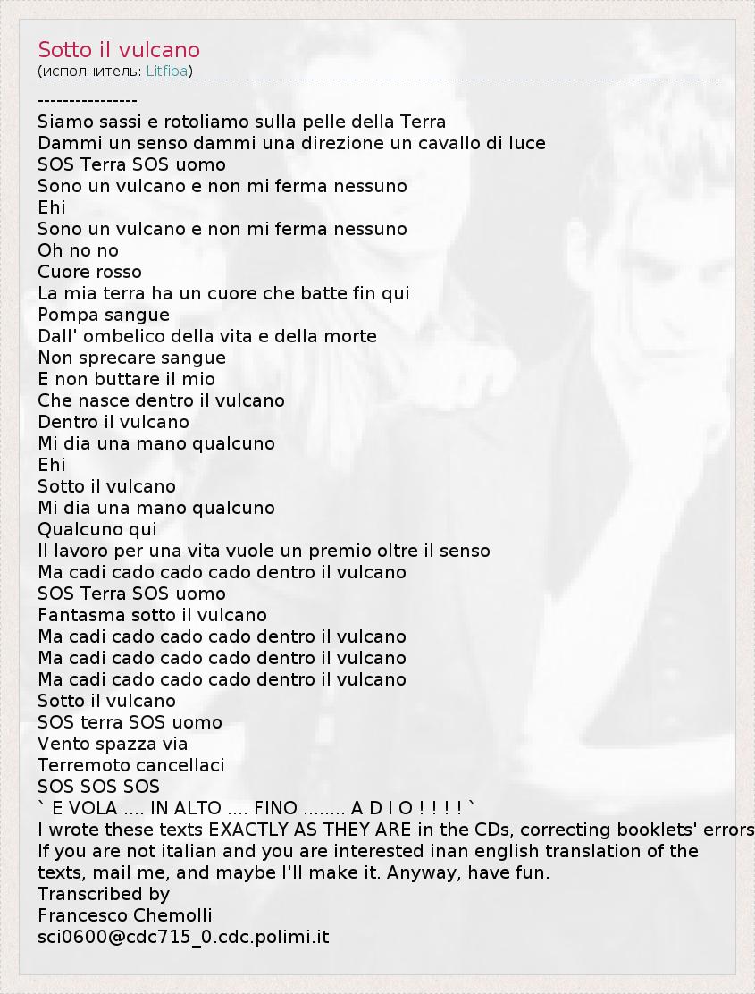 А как ты думаешь, о чем песня "Sotto il vulcano" ?