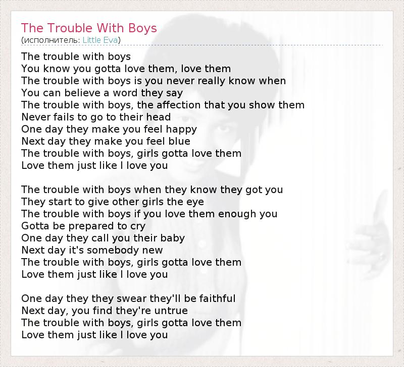 А как ты думаешь, о чем песня "The Trouble With Boys" ?