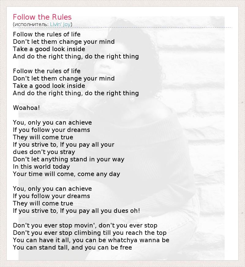 А как ты думаешь, о чем песня "Follow the Rules" ?