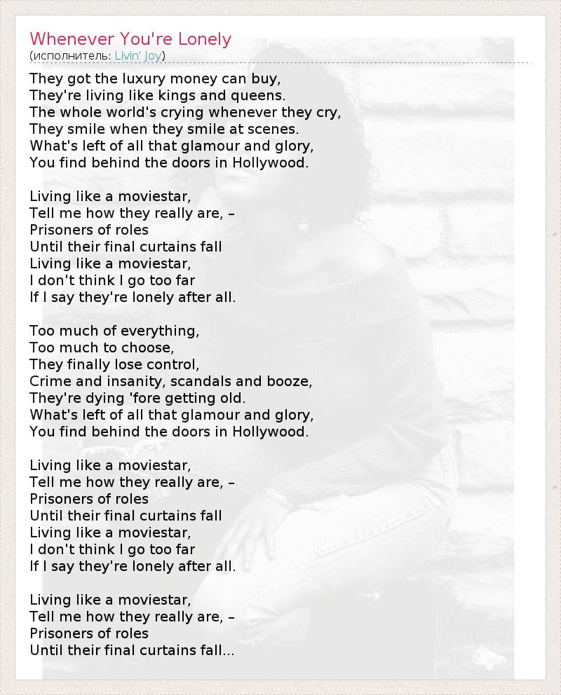 А как ты думаешь, о чем песня "Whenever You're Lonely" ?
