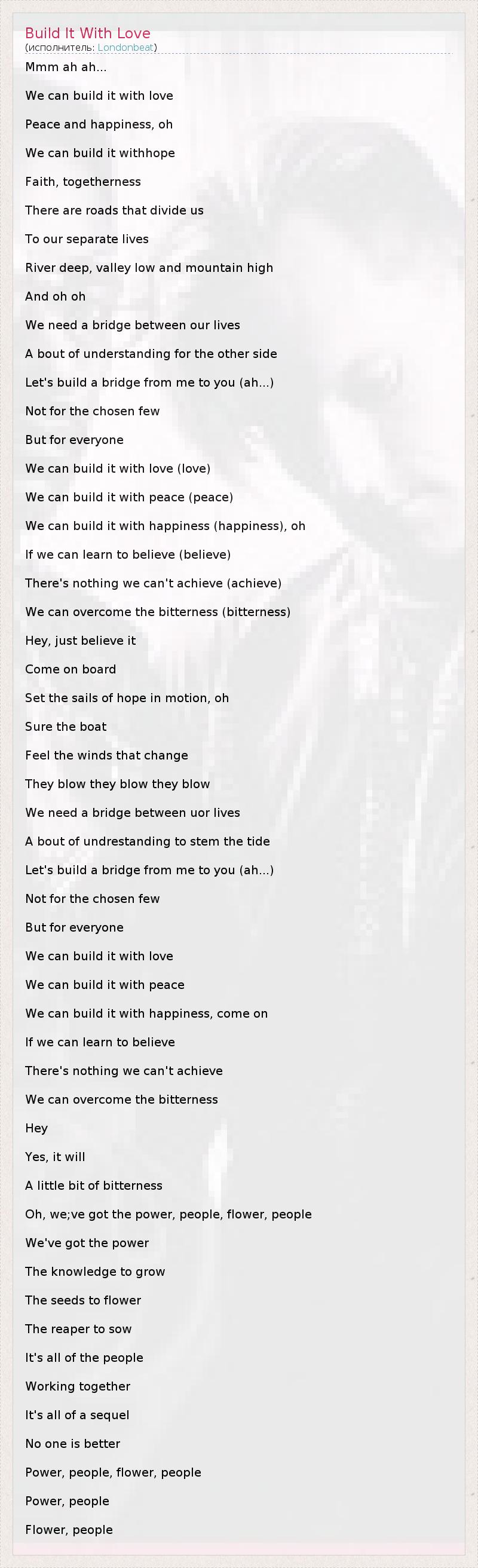 А как ты думаешь, о чем песня "Build It With Love" ?