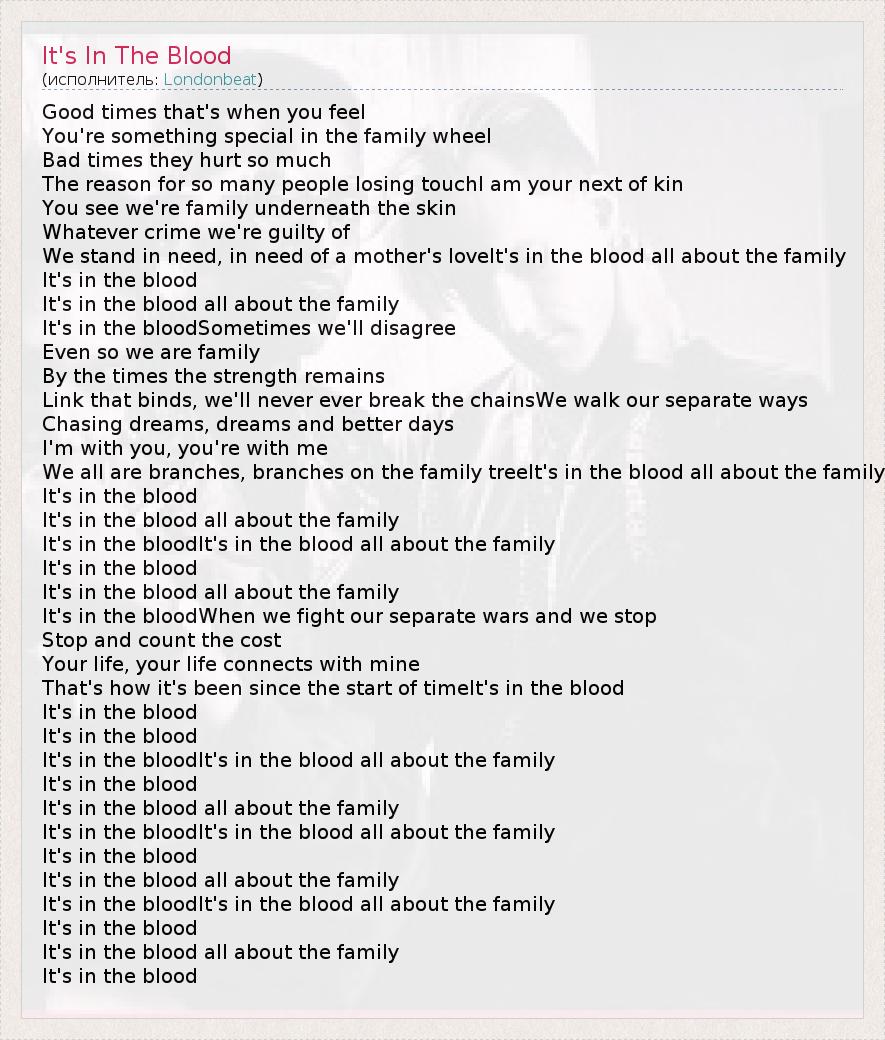 А как ты думаешь, о чем песня "It's In The Blood" ?