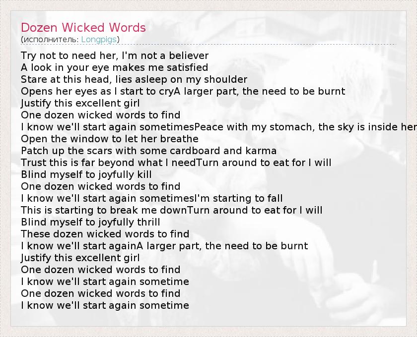 А как ты думаешь, о чем песня "Dozen Wicked Words" ?