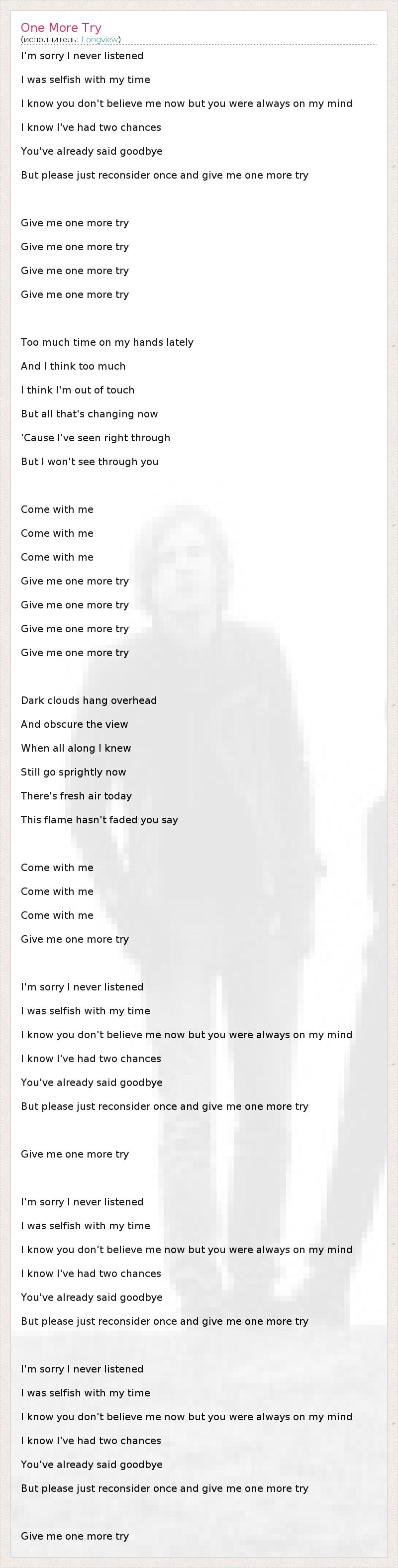 Но пожалуйста только пересмотрите однажды и дайте мне еще одну попытку