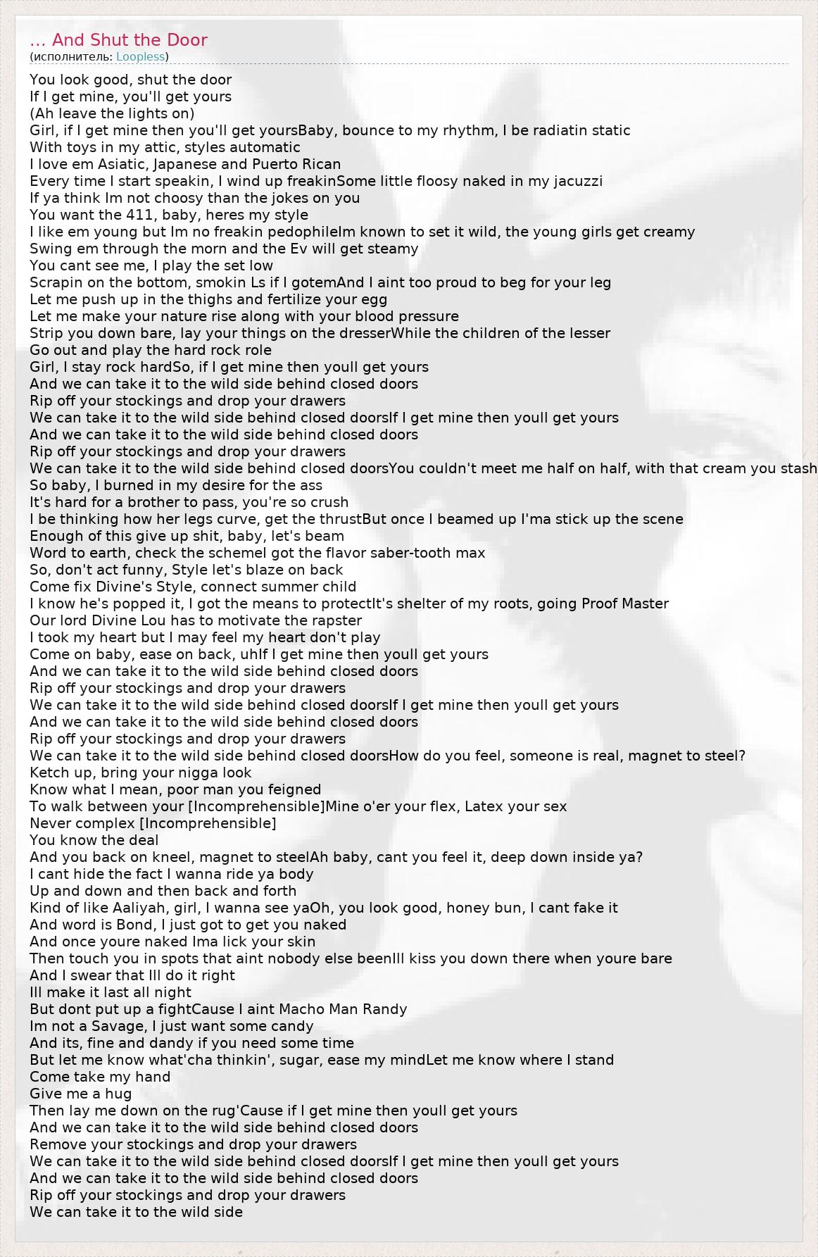 А как ты думаешь, о чем песня "... And Shut the Door" ?