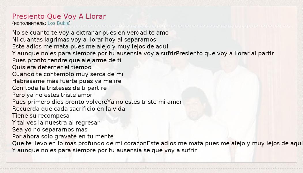 А как ты думаешь, о чем песня "Presiento Que Voy A Llorar" ?