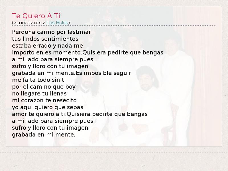 А как ты думаешь, о чем песня "Te Quiero A Ti" ?