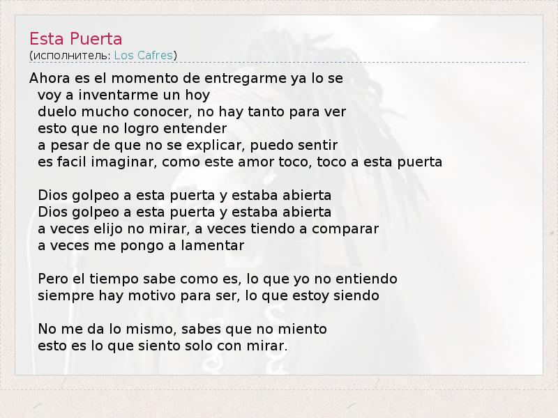 А как ты думаешь, о чем песня "Esta Puerta" ?