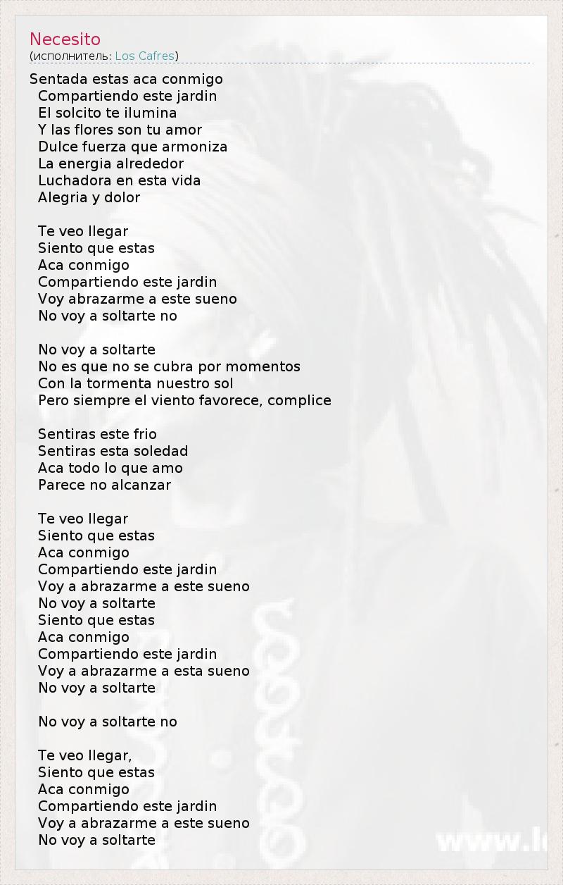 Sentada estas aca conmigo Compartiendo este jardin El solcito te ilumina Y las flores son tu amor Dulce fuerza que armoniza La energia alrededor Luchadora en esta vida Alegria y dolor Te veo llegar Siento que estas Aca conmigo Compartiendo este jardin Voy abrazarme a este sueno No voy a soltarte no No voy a soltarte No es que no se cubra por momentos Con la tormenta nuestro sol Pero siempre el viento favorece, complice Sentiras este frio Sentiras esta soledad Aca todo lo que amo Parece no alcanzar Te veo llegar Siento que estas Aca conmigo Compartiendo este jardin Voy a abrazarme a este sueno No voy a soltarte Siento que estas Aca conmigo Compartiendo este jardin Voy a abrazarme a esta sueno No voy a soltarte No voy a soltarte no Te veo llegar, Siento que estas Aca conmigo Compartiendo este jardin Voy a abrazarme a este sueno No voy a soltarte