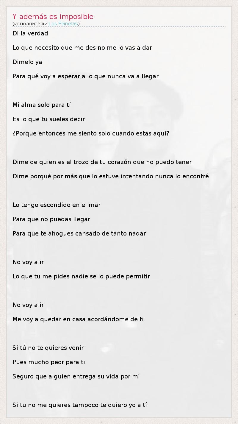 А как ты думаешь, о чем песня "Y además es imposible" ?