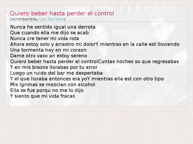 А как ты думаешь, о чем песня "Quiero beber hasta perder el control" ?