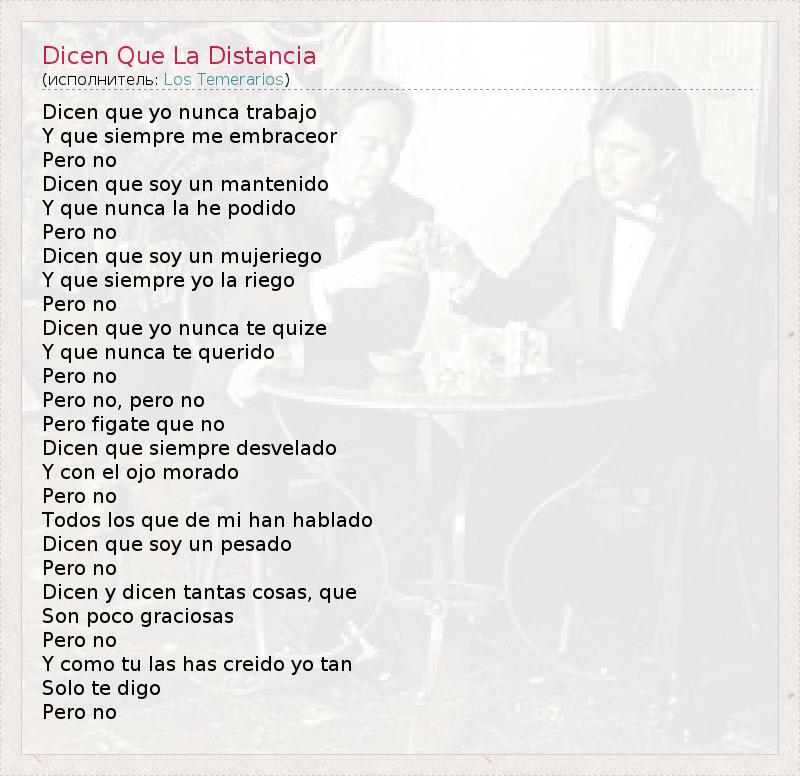 А как ты думаешь, о чем песня "Dicen Que La Distancia" ?