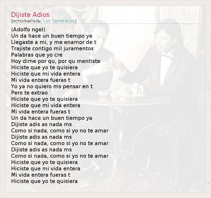 А как ты думаешь, о чем песня "Dijiste Adios" ?