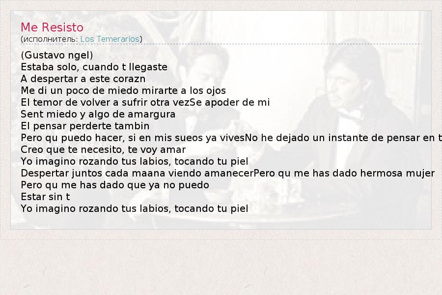 А как ты думаешь, о чем песня "Me Resisto" ?