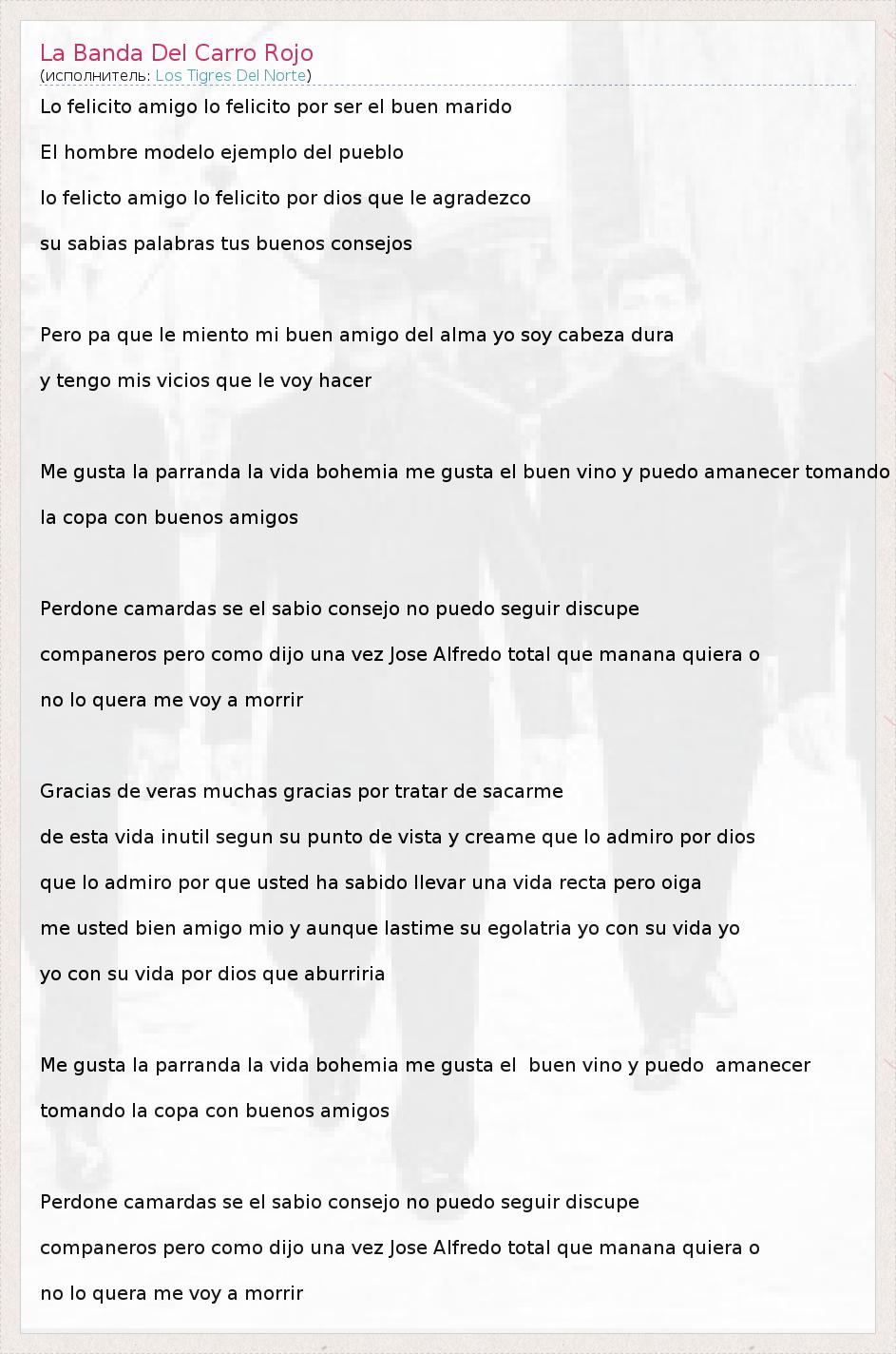 А как ты думаешь, о чем песня "La Banda Del Carro Rojo" ?