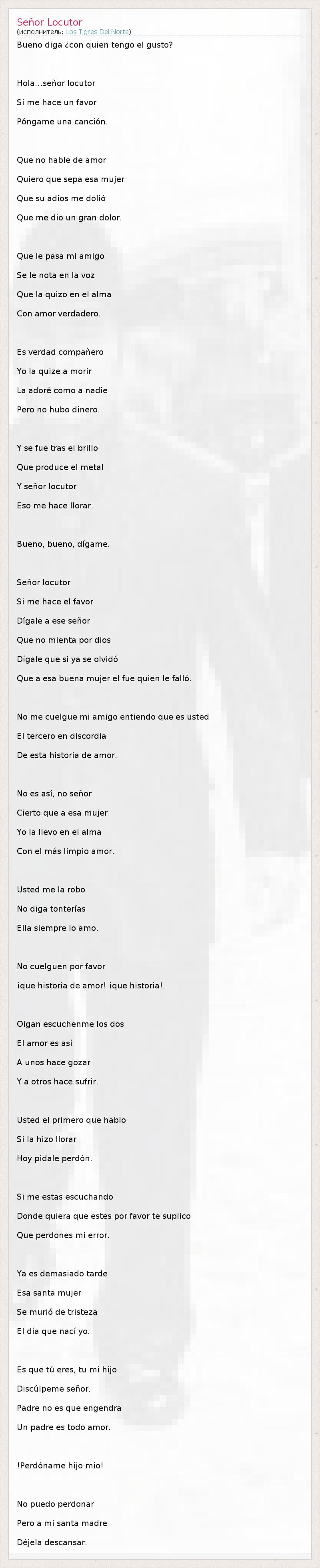 А как ты думаешь, о чем песня "Señor Locutor" ?