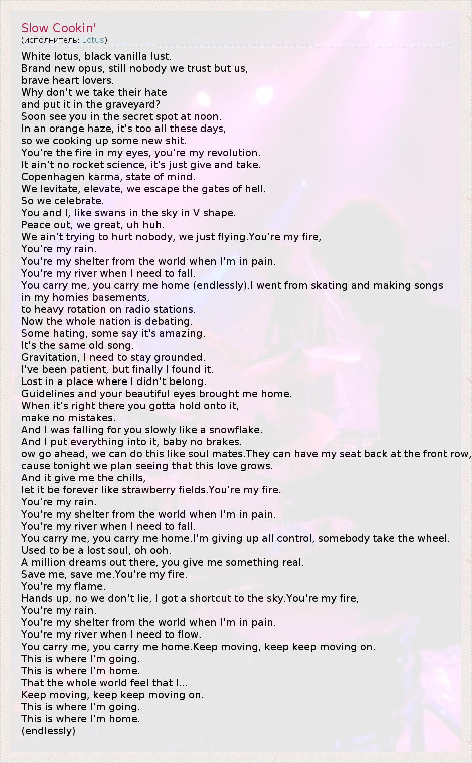 А как ты думаешь, о чем песня "Slow Cookin'" ?
