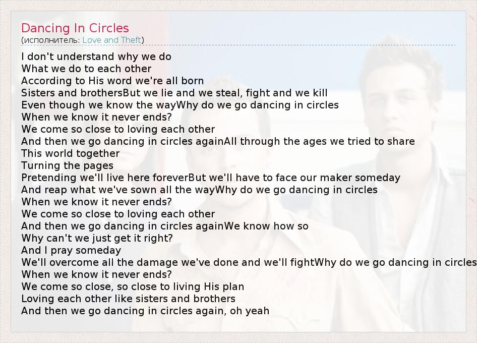 А как ты думаешь, о чем песня "Dancing In Circles" ?