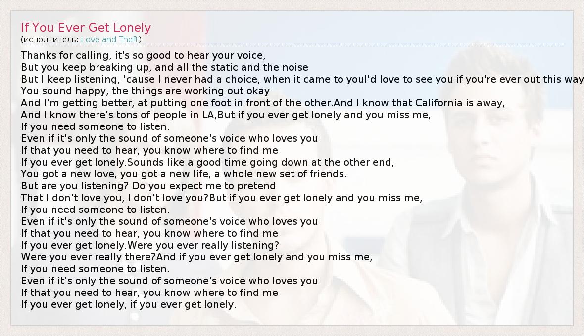 А как ты думаешь, о чем песня "If You Ever Get Lonely" ?