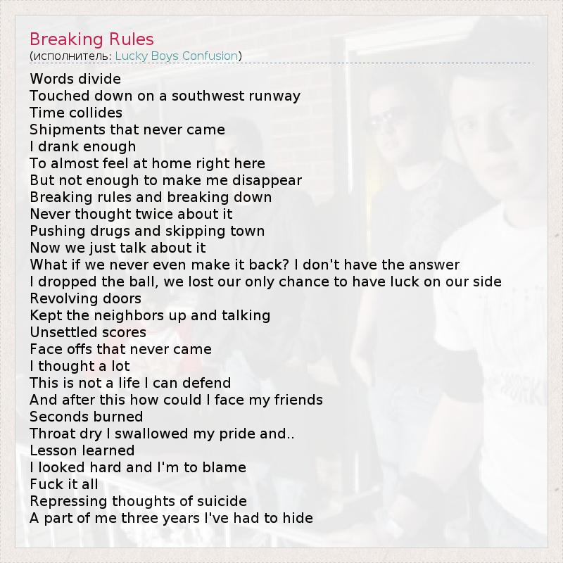 А как ты думаешь, о чем песня "Breaking Rules" ?