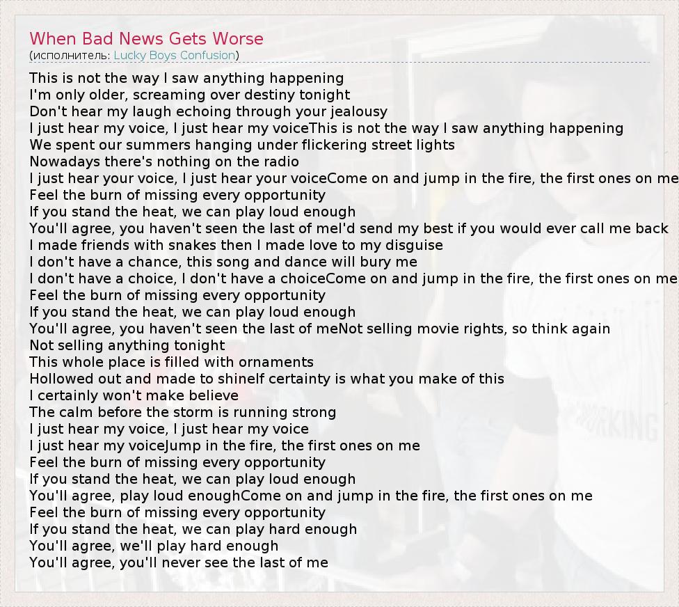 А как ты думаешь, о чем песня "When Bad News Gets Worse" ?
