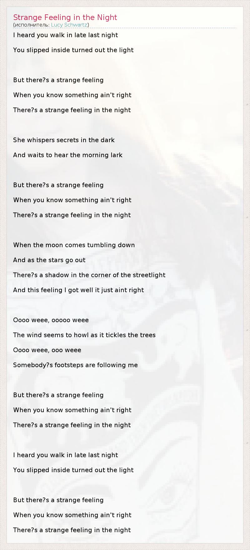 А как ты думаешь, о чем песня "Strange Feeling in the Night" ?