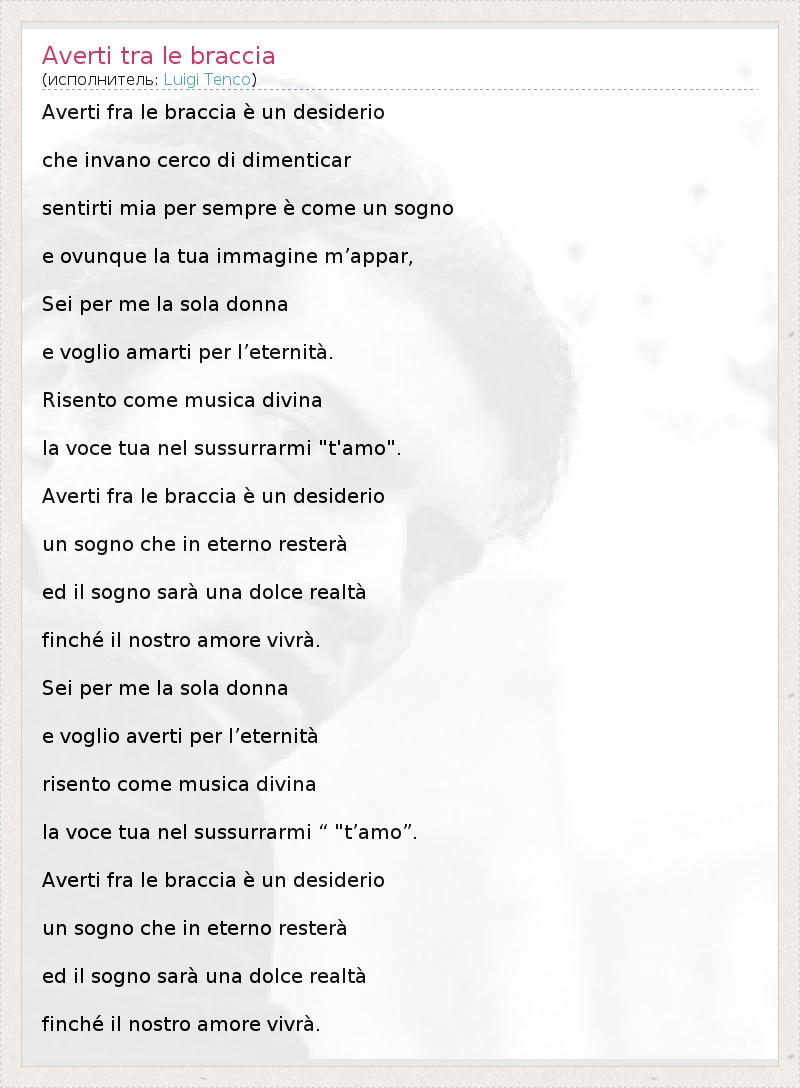 А как ты думаешь, о чем песня "Averti tra le braccia" ?