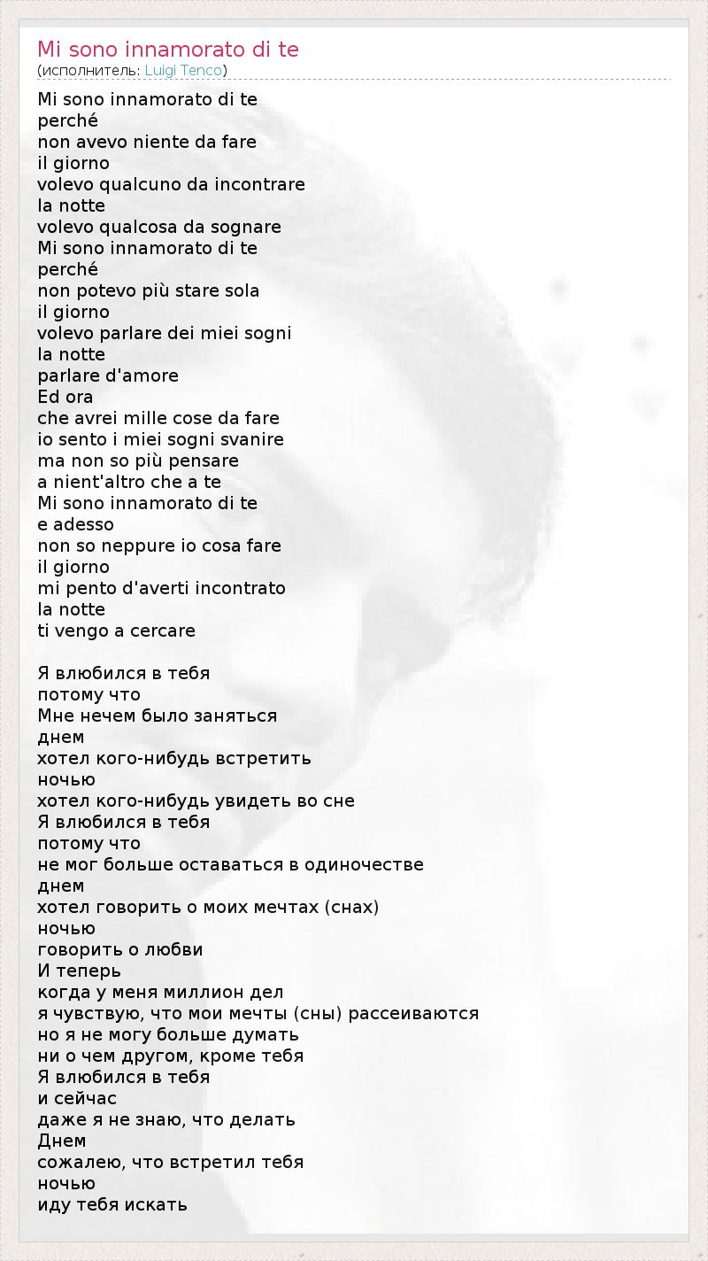 А как ты думаешь, о чем песня "Mi sono innamorato di te" ?