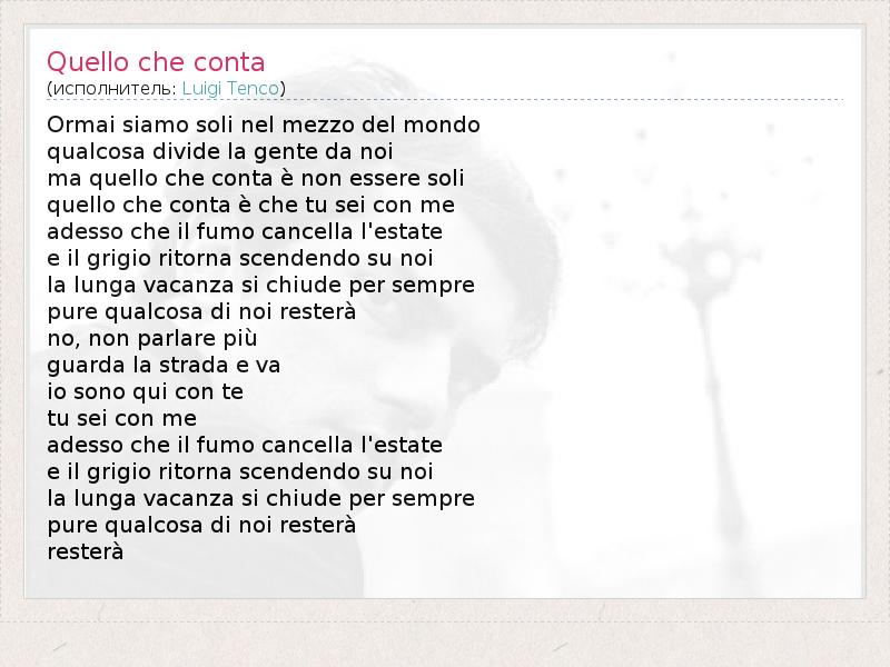 А как ты думаешь, о чем песня "Quello che conta" ?