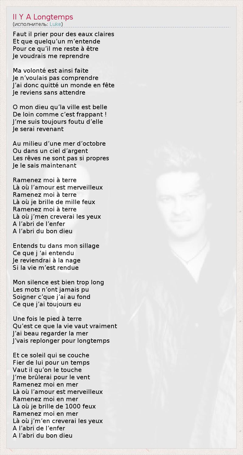 А как ты думаешь, о чем песня "Il Y A Longtemps" ?
